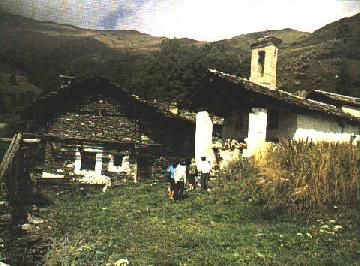 Si possono notare, nelle costruzioni più antiche, finestre molto piccole con ampie strombature, questo per permettere la maggiore entrata di luce possibile dall'esterno e la minore dispersione di calore dall'interno. Le case sono generalmente formate da tre livelli : l'inferiore adibito a stalla, quello di mezzo adibito ad abitazione, infine il superiore adibito a fienile.Le facciate sono spesso munite di due o tre livelli di balconi, anch'essi in parte servivano per lo stoccaggio del fieno al riparo delle intemperie. Questi balconi spesso potevano essere di grandi dimensioni ed erano sostenuti da colonne in pietra, questi tipi di costruzione si possono notare in una magnifica casa a Molini Allioni e in altre a Chiosso. Generalmente le borgate risultano formate dall'accorpamento di più unità prima descritte che però mantengono la loro caratteristica individuale. Molti passaggi all'interno delle frazioni risultano coperti da fienili che congiungono due case, questo sistema permette e permetteva di percorrerli senza il problema della neve in inverno.