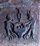 con due volti umani e una croce